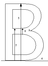 For each glyph, an analysis will be made to determine what features are most important to preserve. Dimensions that must be coordinated across glyphs in the font will be entered into the control value table. Finally an illustrated and annotated look at the instructions for each glyph will be provided. A formal specification of each of the instructions used can be found in the Instructions section.