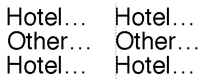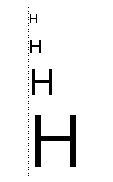 Unless you make certain adjustments, glyphs can seem to line up incorrectly at the margins. Two factors contribute to this effect. First, the advance widths of glyphs contain a certain amount of extra whitespace to account for the normal interglyph spacing. This extra whitespace is called the sidebearings, split into the left sidebearing and the right sidebearing. This produces certain anomalies, since the actual left sidebearing distance varies with the size of the glyph. For example, if different sizes of the same glyph are flush left, they do not appear to line up correctly, as shown in this figure: