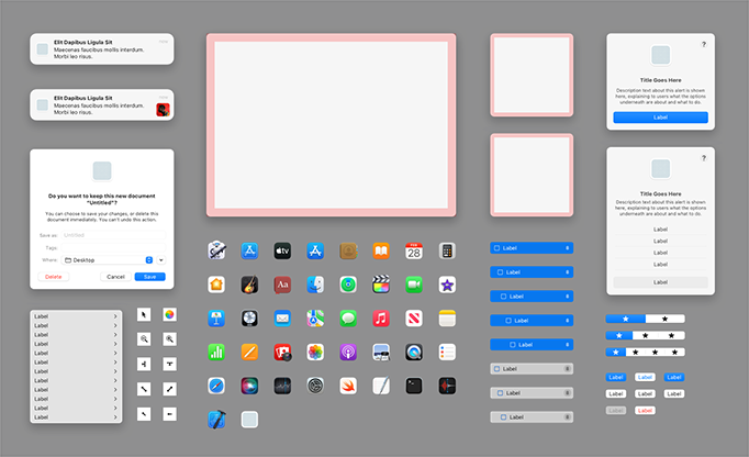 공식 Apple 디자인 템플릿, 아이콘 프로덕션 템플릿, 색상 가이드 등을 사용하여 정확하고 빠르게 앱을 디자인해 보세요.