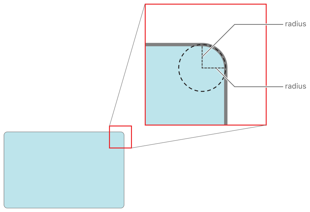 To apply a corner radius to your layer, specify a value for the cornerRadius property of the layer. The radius value you specify is measured in points and applied to all four corners of the layer prior to display.