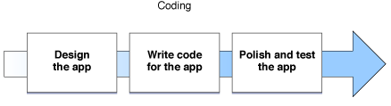 Figure 4-1 shows a typical organization of the development process. You design what you want your app to do and how it should work, implement those ideas in code, and then test the code you’ve written.