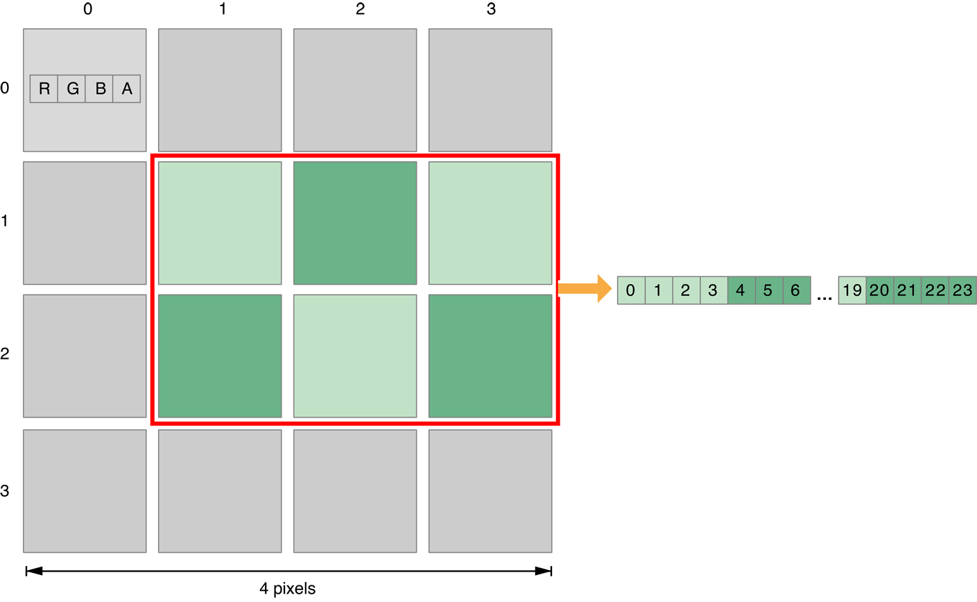 This function provides functionality similar to that of the OpenCL standard clEnqueueCopyBufferRect function; it copies a one-, two-, or three-dimensional rectangular region from the src pointer to the dst pointer, using the respective origin parameters to determine the points at which to read and write. As shown in Figure 9-1, the region parameter specifies both the size and shape of the area to be copied.