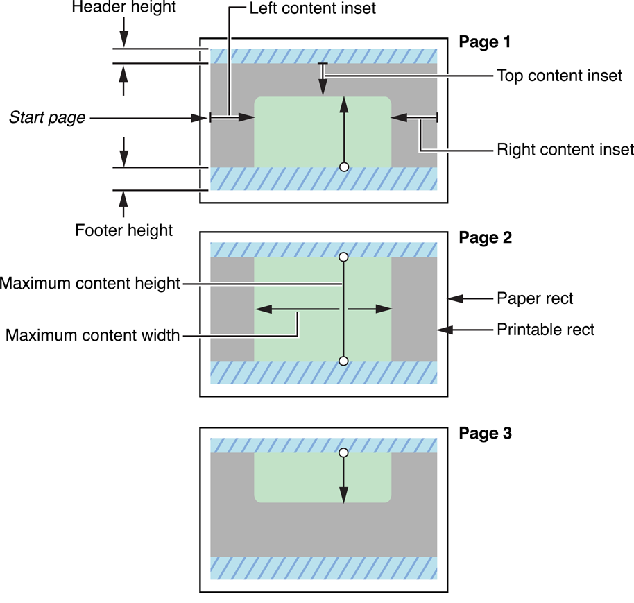 printFormatterproperty.Page renderers. Page renderers let you provide your own drawing routines for custom content, and give you complete control over the page layout, including headers and footers. To use a page renderer, you must first write a page renderer subclass, then assign an instance of it to the print interaction controller’s