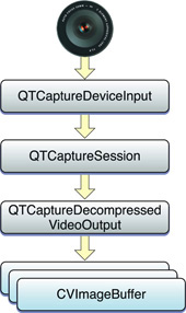 In particular, the chapter discusses how the QTKit capture API works in processing audio and video data. Typically, clients of the API make use of three essential types of objects: capture inputs, capture outputs and a capture session. These are fundamental to understanding the methodology and high-level workings of the API.