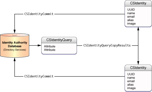 For a visual representation of how CSIdentity objects and CSIdentityQuery objects interact with an identity authority, see Figure 1-4.