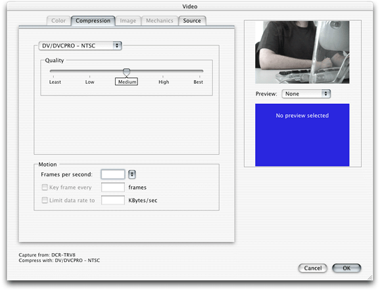 JQTCanvasclass, a new lightweight version of theQTCanvasclass which supports scaling of Flash content. Discussed in the section QuickTime for Java Enhancements.A new, improved sequence grabber user interface which includes new settings available on all platforms. A new group of Sequence Grabber APIs are also included in QuickTime 6. Discussed in the sections New Sequence Grabber User Interface and New Sequence Grabber APIs.