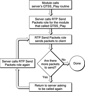 QTSS_RTSPFilter_Role,QTSS_RTSPRoute_Role,QTSS_RTSPAuthenticate_Role,QTSS_RTSPAuthorize_Role,QTSS_RTSPPreProcessor_Role,QTSS_RTSPRequest_Role,QTSS_RTSPPostProcessor_Role, andQTSS_RTSPSessionClosingRole. The RTSP session also calls modules in theirQTSS_RTSPIncomingData_Role. The RTP session handles the following role calls as well as data reads and writes:QTSS_RTPSendPackets_Role,QTSS_RTCPProcess_Role, andQTSS_ClientSessionClosing_Role. For more information about roles, see Module Roles.