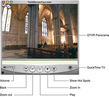 Figure 1-7  QuickTime VR on Mac OS X, with various controls to view and manipulate QTVR panoramas