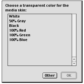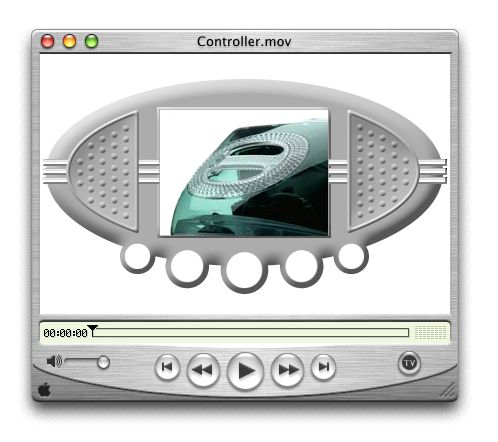 Perhaps most exciting for authors, however, is the introduction of “media skins” in QuickTime 5. Now you can customize the appearance and behavior of a movie when played in QuickTime Player. A media skin allows you to control the size and shape of the Player window and controls, as well as the appearance, width, and shape of any frame.