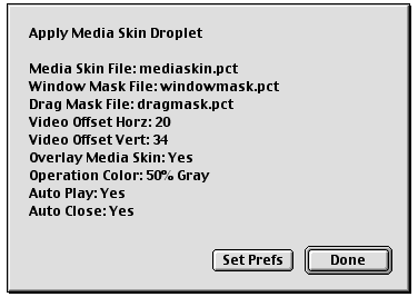 • The capability to customize the appearance of QuickTime Player by adding a “media skin” to your movie. A media skin specifies the size and shape of the window that the movie is displayed in, while also specifying which part of the window is draggable. A QuickTime movie does not have to be surrounded by a frame. No controls are displayed, except those embedded in the movie using Flash tracks or wired sprites.