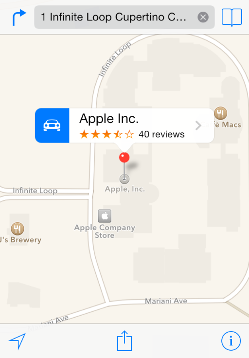 Annotations offer a way to highlight specific coordinates on the map and provide additional information about them. You can use annotations to call out particular addresses, points of interest, and other types of destinations. When displayed on a map, annotations typically have some sort of image to identify their location and may also have a callout bubble providing information and links to more content. Figure 6-1 shows an annotation that uses a standard pin annotation view to mark a particular location and provides a callout bubble that displays additional information including a disclosure indicator that leads to more details.
