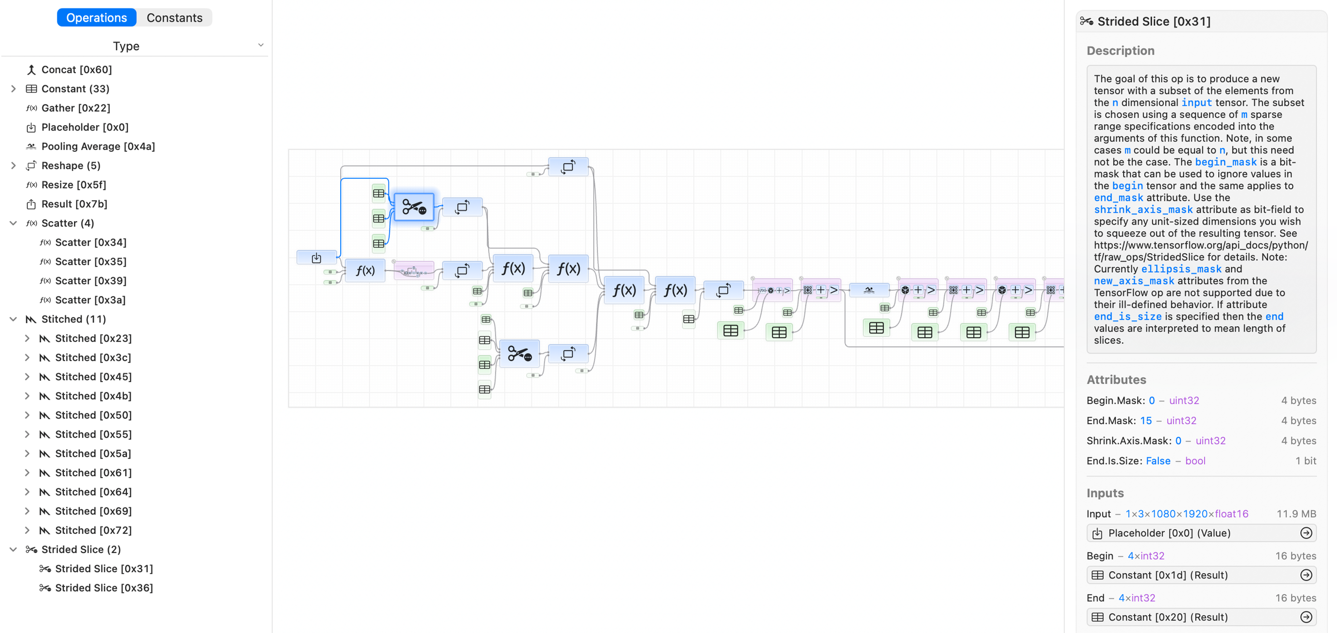 You can visualize how your operations are optimized for execution, and discover which operations are stitched together on the GPU or offloaded to the Neural Engine. Stitched operations are fused into a single, optimized Metal shader, so they have no intermediate memory overhead.