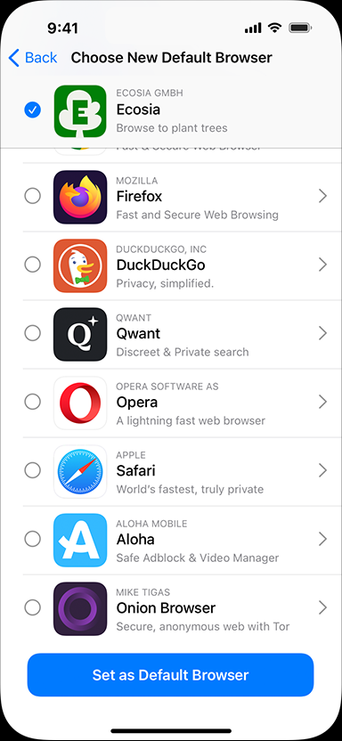- Browser descriptions on the choice screen will include the app subtitle from the browser’s App Store product page.